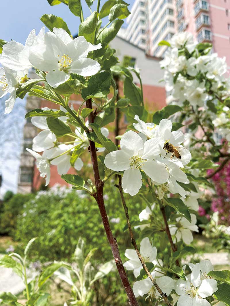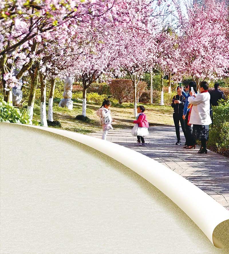花海如潮, 游人如织。时下正是踏青赏花的好时节,市城区各公园、道路两侧鲜花怒放,桃花、樱花、海棠花、丁香花等争奇斗艳,游人纷纷驻足欣赏、拍照留念。
