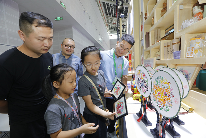 工作人员王慧恩正在向观展者推介文创产品,她告诉记者:“此次山西晋之源壁画艺术博物馆带来了自创、手工自制的‘壁画小品’泥坯冰箱贴,还有‘粉壁丹青之千手千眼观音’笔记本,‘土木华章之唐代建筑五台山佛光寺’方形本等近30件文创产品,其中冰箱贴卖得很好,供不应求。”