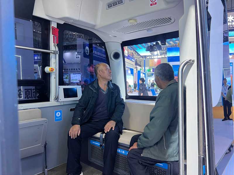 观众体验自动无人驾驶小巴。新华社记者 马晓洁 摄