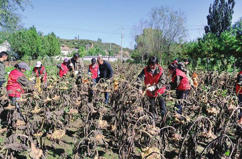 川口村到村工作大学生崔莹已是连续三天参与抢收。她一边利索地将葵盘装入编织袋一边说:“除了抢收,我们几个年轻人还负责统计各户收割进度,并协调村里的文化广场、学校操场等硬化场地作为临时晾晒点。”