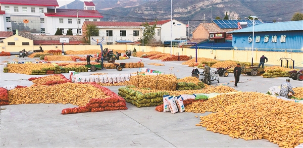 10月28日,昔阳县赵壁乡赵壁村农户集中晾晒玉米。通讯员 郑晓飞 摄