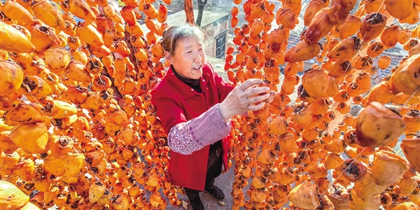 11月15日,在左权县东安山村,漫山遍野的柿子树挂满个大橙黄、汁多肉软的柿子。在阳光映射下,柿子和远处的青山相映成趣,透出“红红火火、柿柿如意”的“丰”景乡愁,村民们唱着民歌摘柿子、晾柿饼、忙订单、增收入,奏响乡村振兴的华美乐章。