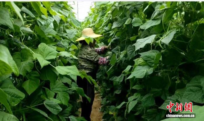 西大王村农业合作社联合返乡能手建起大棚,引进价格翻倍的优质无丝豆角。宫丽云 摄
