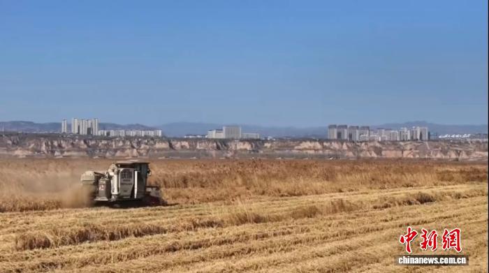 中新网运城12月5日电 (高雨晴 高智茹 郭卫东)初冬时节,山西省万荣县黄河滩涂之上,万亩水稻迎来规模化收获季,“南稻北种”正在黄河沿岸变成沉甸甸的丰收现实。