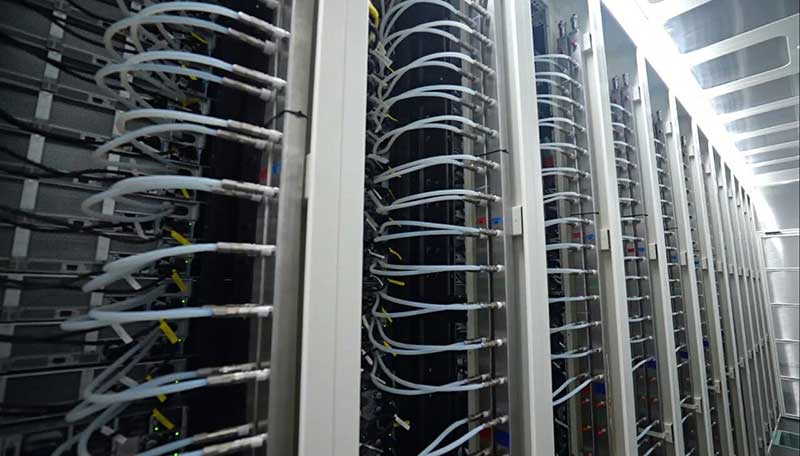 山西大同秦淮数据灵丘基地冷板液冷服务器机柜。图片来源:灵丘县宣传部