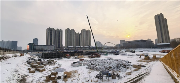 2月6日,我市迎来降雪,市城区迎宾街工人文化宫东侧的工地依旧热火朝天。施工现场,机车隆鸣,建设者们顶风冒雪坚守岗位,在严寒中抢工期、赶进度,用干劲为城市生长注入冬日暖流。