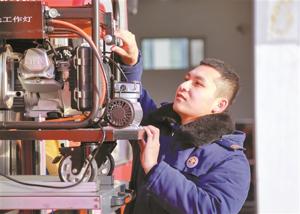 政府专职消防员解思凯对设备进行安全巡查。