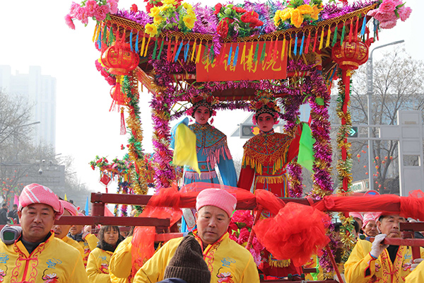 小白乡方阵一出场,三辆彩车如三匹骏马,驰骋在乡村振兴的康庄大道上;憨态可掬的大头娃娃、灵动诙谐的划旱船,这是阳邑乡新村带来的多彩民俗表演方阵;白城村腾跃吉祥、雄浑豪迈的舞狮、战鼓,曹庄村的大头娃娃、媒婆、花轿、丑相公、腰鼓也亮出了各自的绝活,让大家感受到浓浓的风俗年味。