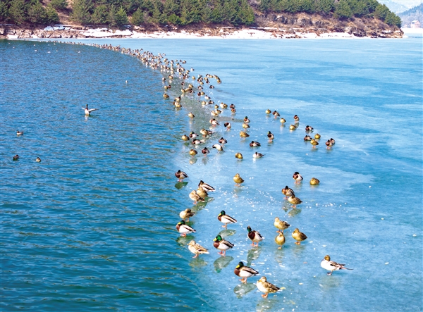 随着气温回暖,左权县清漳河国家湿地公园迎来大批北归候鸟。红嘴鸥、赤麻鸭、绿头鸭等水鸟在浮冰与碧波间悠然游弋、觅食嬉戏,清脆鸣叫声回荡河畔,为春日增添无限生机。