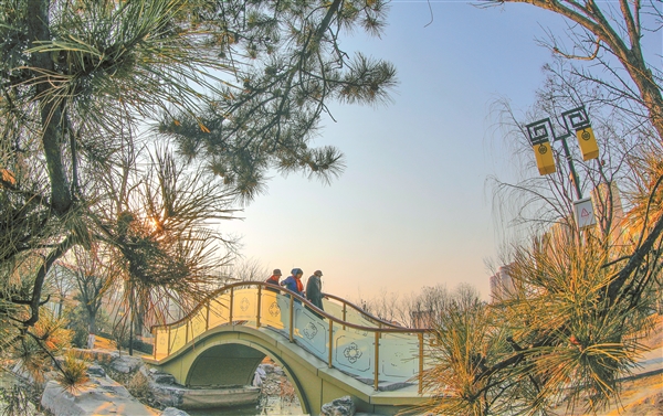 市民在市城区“口袋公园”无喧园休闲漫步